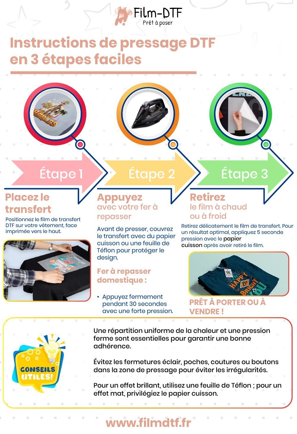 Transformez vos vêtements en quelques secondes avec nos films DTF prêts à l’emploi ! Plus besoin de matériel professionnel, un simple fer à repasser suffit pour un flocage parfait en 30 secondes chrono. 👕✨