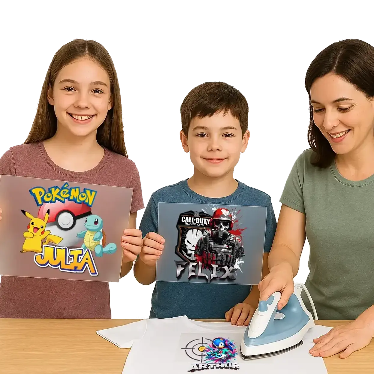 🔥 Tu nous envoies ton visuel, on te sort un transfert DTF prêt à repasser à la maison. Pas de presse ? Pas de stress. Un coup de fer et t’es stylé. Point final.